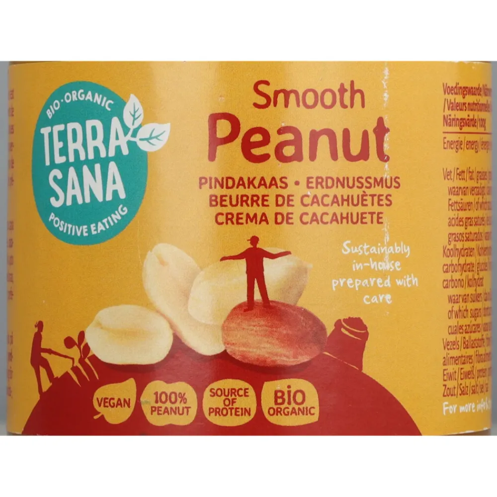 Terraasna Pindakaas Smooth is een vegan, gluten- en gist vrije pindakaas met zonder toegevoegd suiker en zout. Deze pindakaas is gemaakt van 100% pinda’s en is eiwit- en vezelrijk. Hij is niet alleen lekker op brood, beschuit of crackers, maar ook lekker om te gebruiken in ijs en desserts, door de yoghurt en als basis voor de lekkerste saus.