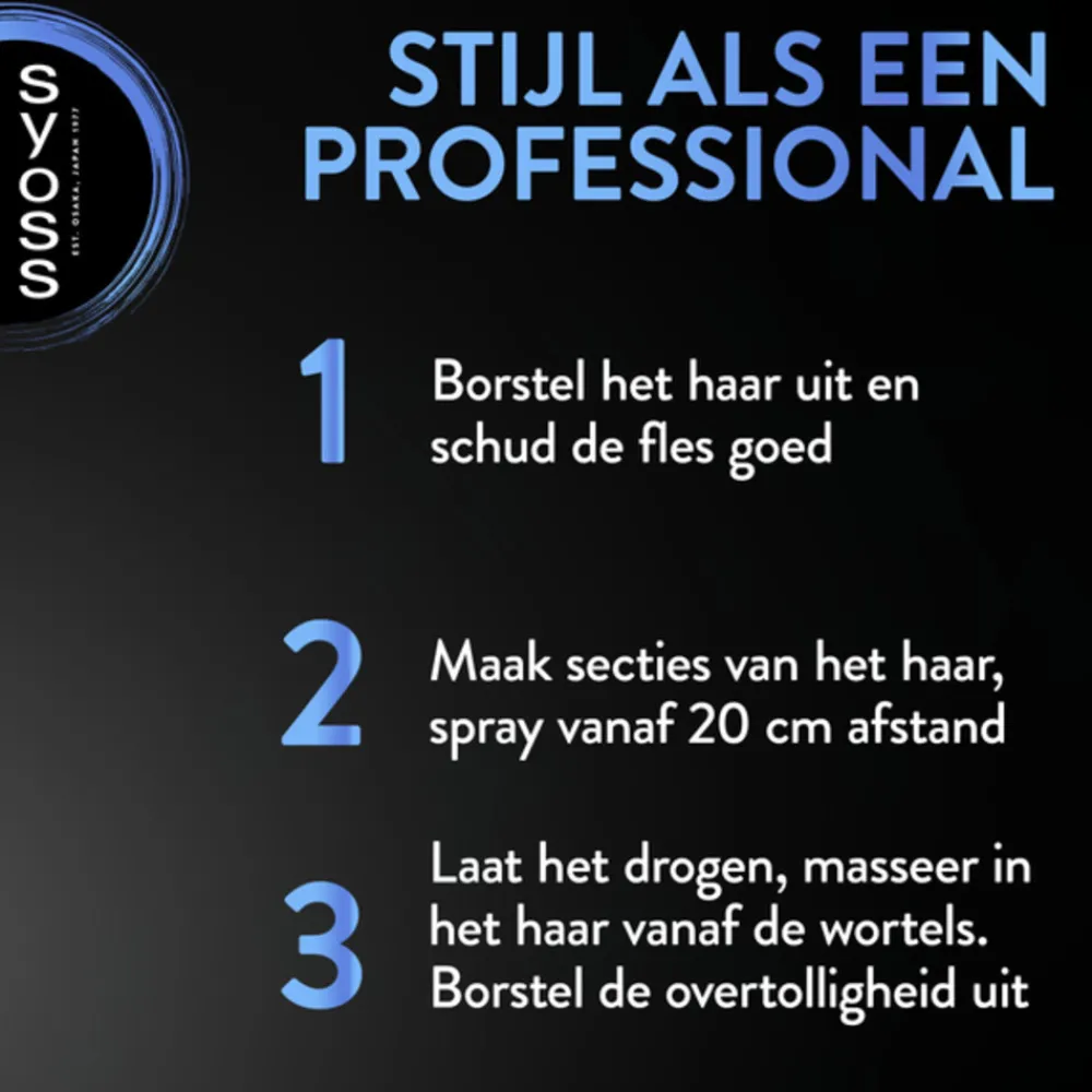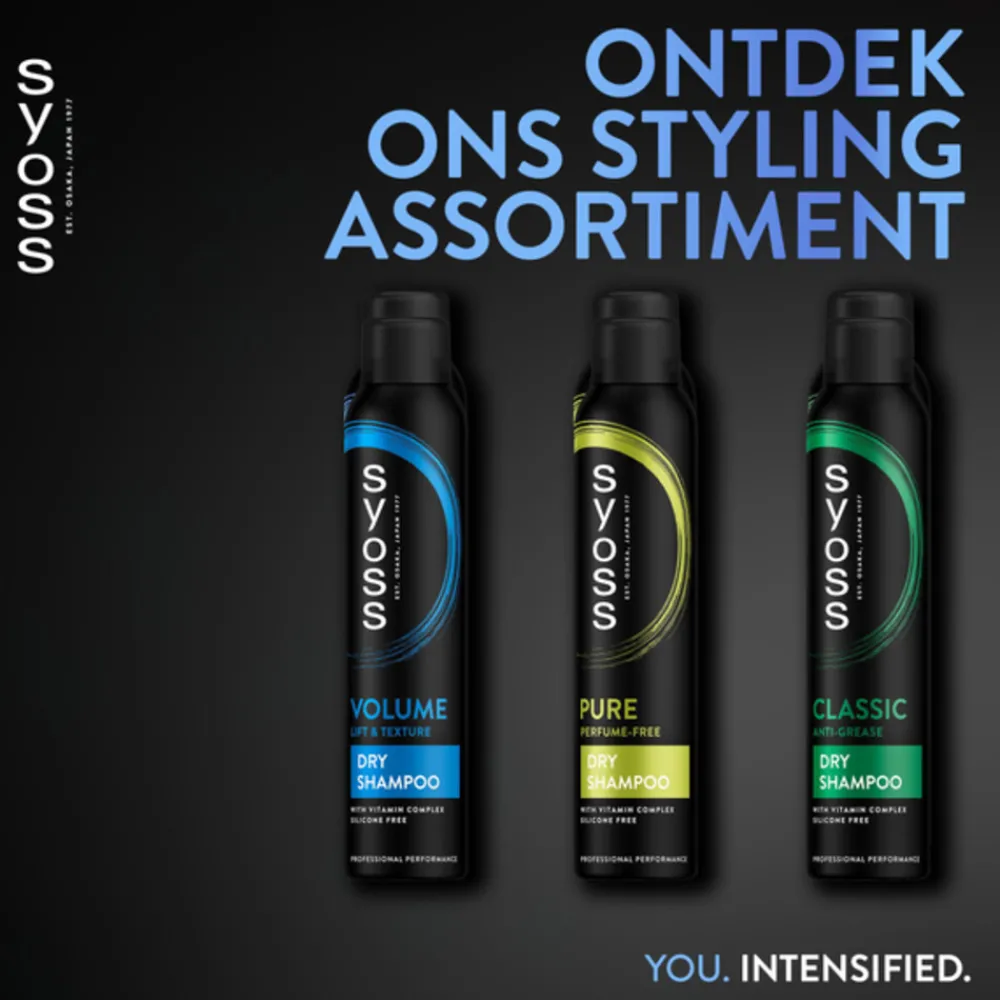 Breng het gevoel dat je net van de kapper komt thuis tot leven met Syoss! De salon- geïnspireerde SYOSS Droogshampoo, ontwikkeld met en getest door kappers, biedt je de kans nog langer van die salon look te profiteren, gewoon thuis. De formule met vitminecomplex, een combinatie van Panthenol en Niacinamide, versterkt de haarstructuur en geeft direct een volumeboost en textuur. Voor een zuiver en fris haargevoel, zonder water te gebruiken.