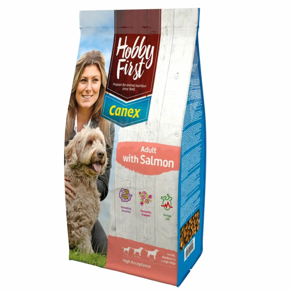 Adult zalm is een complete en uitgebalanceerde voeding voor volwassen honden van alle rassen met een gemiddelde energiebehoefte en een normaal gewicht. Het bevat de juiste dagelijkse hoeveelheden eiwitten, vetten, koolhydraten, vitaminen en mineralen die bijdragen tot een goede gezondheid van jouw hond. De hoogwaardige grondstoffen zijn van plantaardige en dierlijke oorsprong.