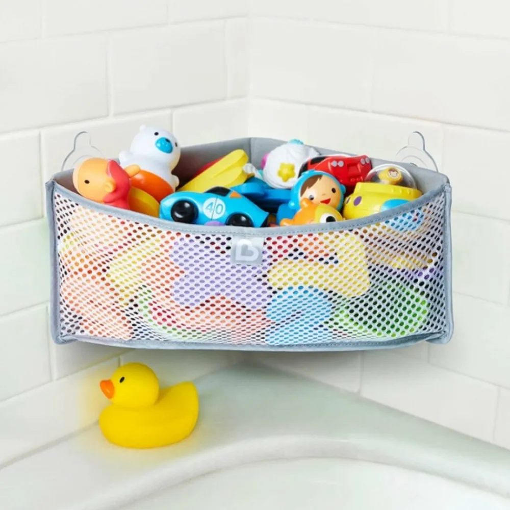 Houd je badkamer koel, rustig en georganiseerd met deze handige badspeelgoed organizer. Het compacte hoekontwerp maximaliseert de ruimte voor badspeelgoed, waardoor je meer opbergruimte hebt (let op: speelgoed niet inbegrepen). De mesh-stof bevordert een snellere droging van het speelgoed en voorkomt schimmelvorming. Met antislip zuignappen die stevig hechten aan de meeste badkamer- en douchewanden, blijft alles op zijn plek. De set bevat zelfklevende montageschijven, waardoor de zuignappen ook op gestructureerde of poreuze oppervlakken kunnen worden bevestigd. Voor optimale prestaties wordt aanbevolen het op gladde oppervlakken te gebruiken en voegen en gestructureerde oppervlakken te vermijden.