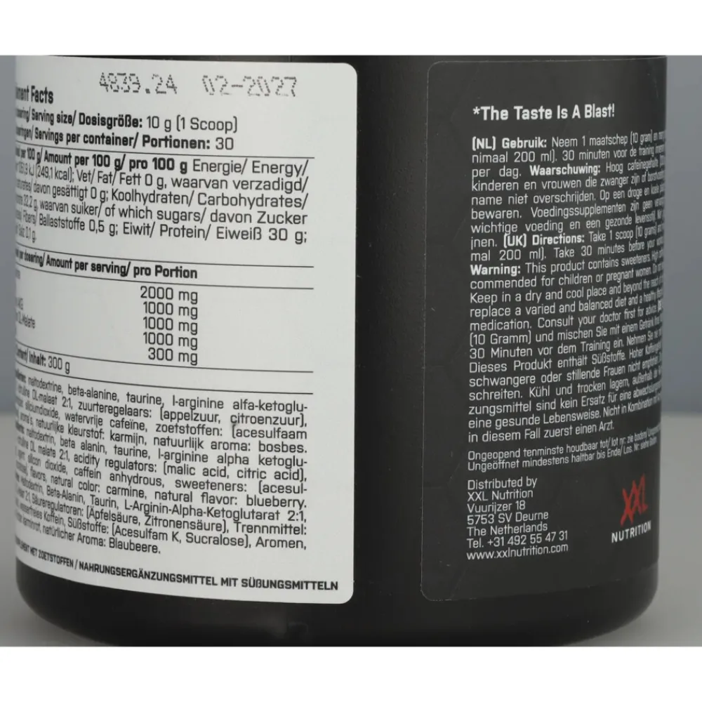 XXL Nutrition Blast Pre Workout Fruit Punch bevat enkel de beste ingrediënten zoals citruline malaat, beta-alanine, taurine en cafeïne om jouw training naar een hoger niveau te tillen. Blast Pre Workout kun je gebruiken bij iedere vorm van sport, of je nou wilt knallen in de gym of een zware sprinttraining op de planning hebt staan. Deze kwalitatief hoogwaardige pre workout maakt enkel gebruik van de beste en bewezen pre-workout ingrediënten. Er is bewust geen creatine aan toegevoegd, zodat je zelf beslist of je dit er nog naast wilt gebruiken. Iedere pot bevat 30 doseringen en is verkrijgbaar in 7 heerlijk frisse smaken.