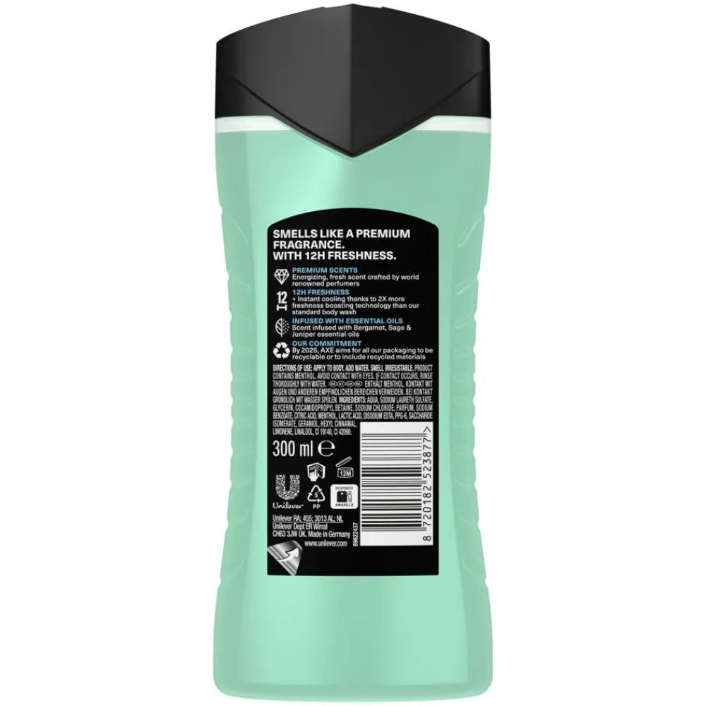 - AXE douchegel is verpakt in een 100% gerecyclede en recyclebare fles