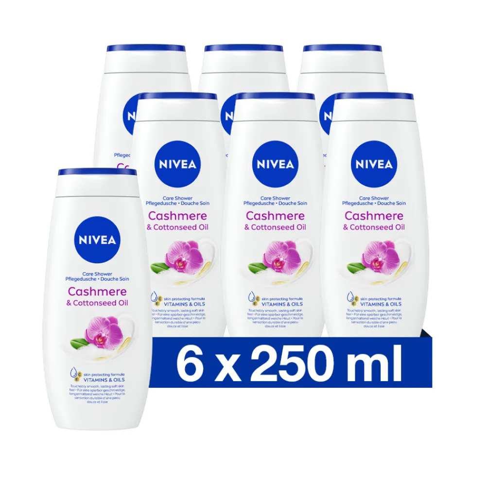 NIVEA Soft Care Shower Cashmere & Cotton Seed Oil biedt je iedere dag een ultiem verwenmomentje onder de douche. De pH huidneutrale formule met verfijnde orchideegeur prikkelt je zintuigen terwijl de olie uit de zaadjes van de katoenplant ondertussen je huid verwend. De formule is biologisch makkelijk afbreekbaar. Breng de douchecreme eenvoudig aan op je natte huid en masseer het in over je hele lichaam voordat je het afspoelt. Ervaar een voelbare gladde huid!