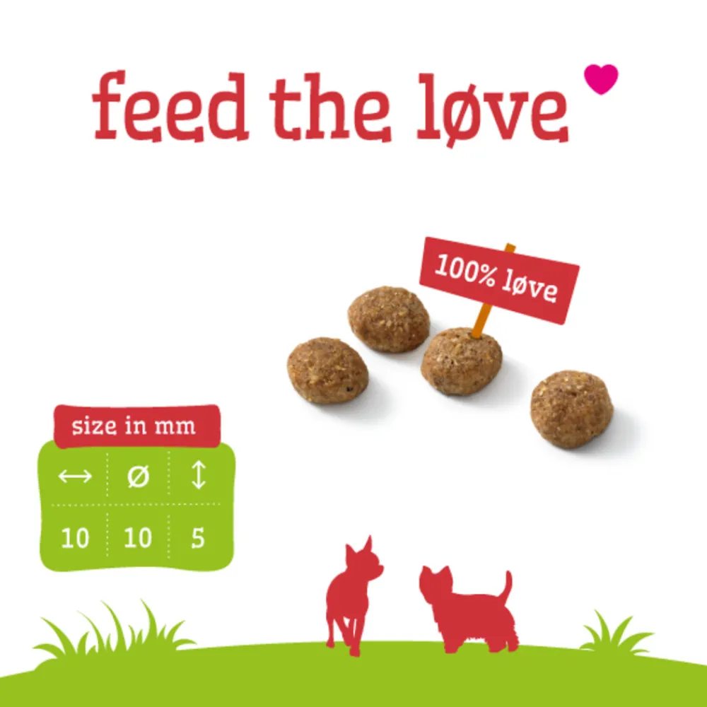 Smølke Senior Mini is een complete Alles-in-één hondenvoeding afgestemd op de behoefte van kleine oudere honden vanaf 8 jaar met een maximaal gewicht van 10kg. Het recept van deze lekkere en gezonde hondenbrokjes heeft als basis drie verschillende dierlijke eiwitbronnen, namelijk (verse) kip, duurzaam gevangen vis en lam. De voeding is samengesteld zonder tarwegluten en er zitten geen kunstmatige geur-, kleur- en smaakstoffen in. Smølke gebruikt ook geen chemische antioxidanten en conserveermiddelen.