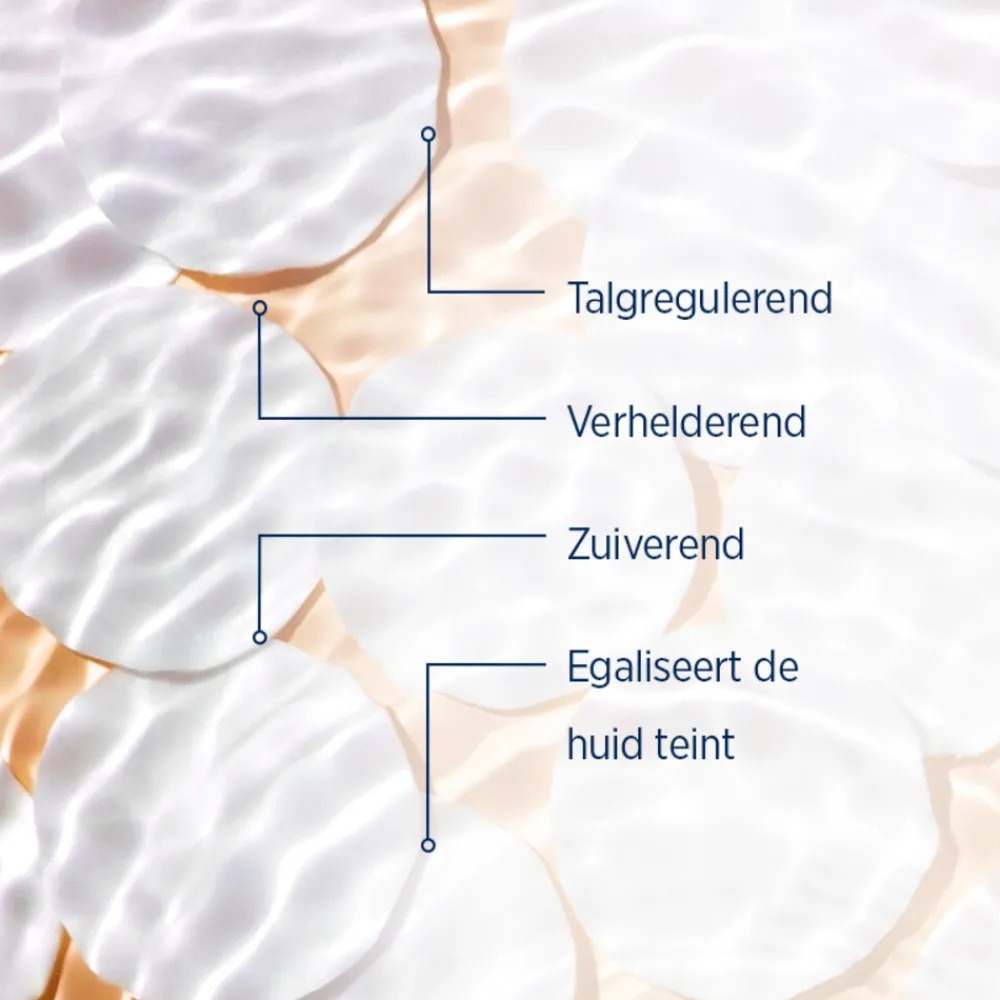 - Verheldert: Niacinamide helpt de huidtint te egaliseren en pigmentvlekjes te verminderen.