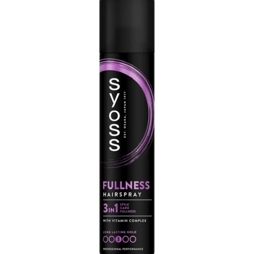 Breng het gevoel dat je net van de kapper komt thuis tot leven met Syoss! De salon- geïnspireerde Syoss Fullness Haarspray, ontwikkeld met en getest door kappers, zorgt voor een directe transformatie van dun en fijn haar in een volle hairstyle – voor volumineuze salon looks thuis. De 3 in 1 formule: styling, verzorging, herstel – bevat een Vitaminecomplex, een combinatie van Panthenol en Niacinamide, voor een versterkte haarstructuur.