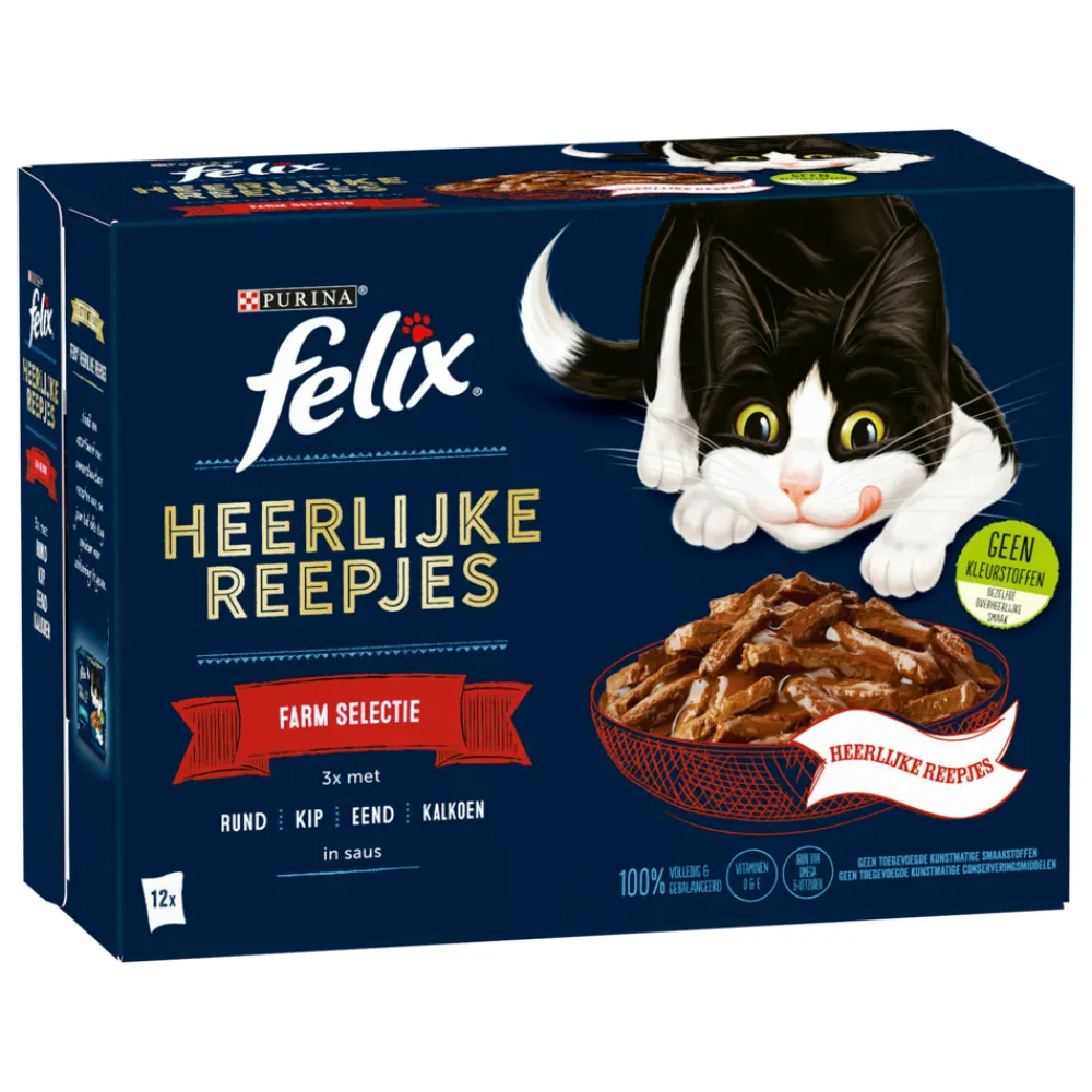 Ze zien, ruiken en smaken heerlijk, net alsof je het zelf hebt klaargemaakt! Wanneer je jouw kat Felix Heerlijke Reepjes voert, weet je dat je hem iets geeft waar hij echt van houdt.