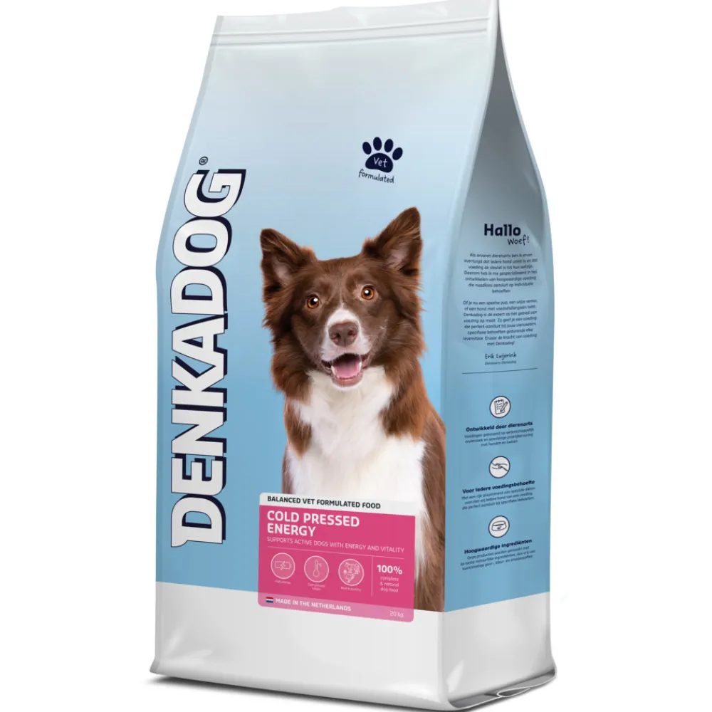 Denkadog Cold Pressed Energy is een koudgeperste natuurlijke brok voor volwassen honden met een actieve levensstijl. De brok is zacht, gemakkelijk breekbaar, met veel vet en is dus extra voedzaam.