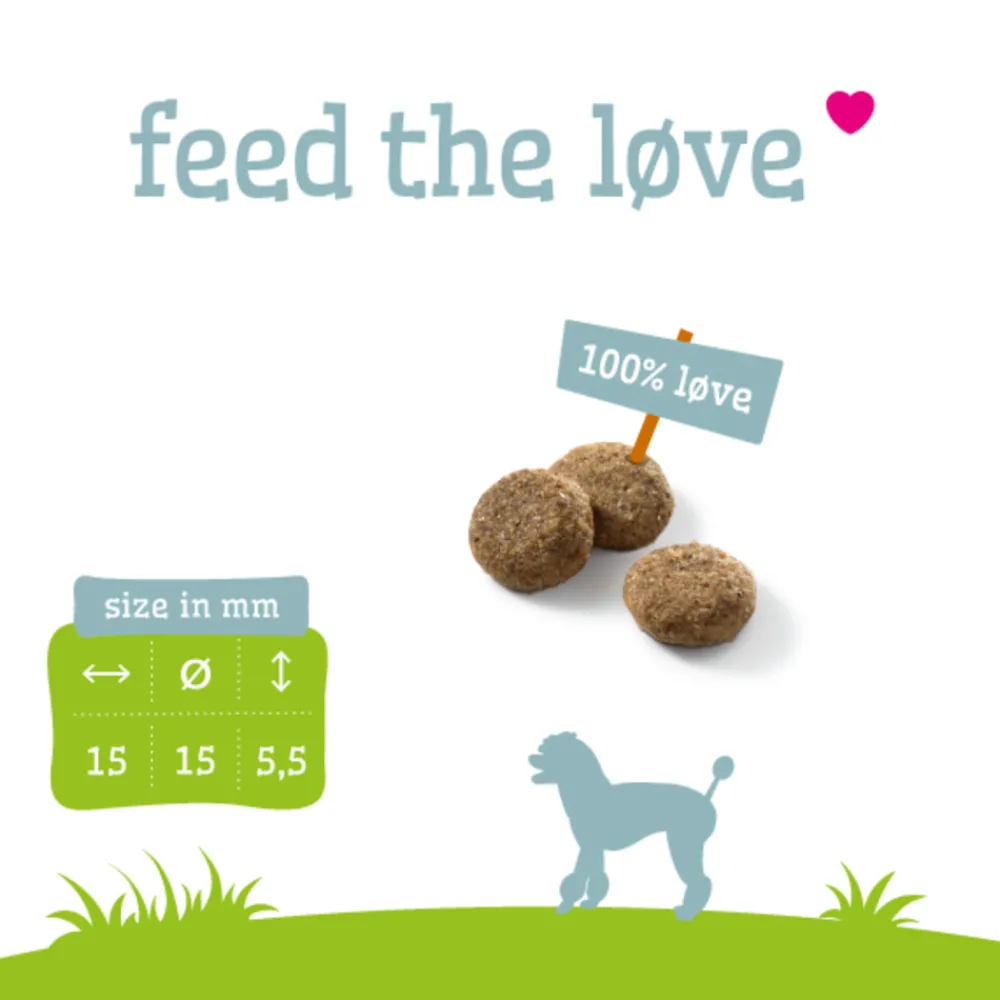 Smølke adviseert om de brokjes voor de aangegeven houdbaarheidsdatum aan je hond te voeren. Sluit de verpakking na openen weer zorgvuldig af en bewaar de voeding altijd op een koele en droge plaats. Zo blijven de brokjes lekker & vers!