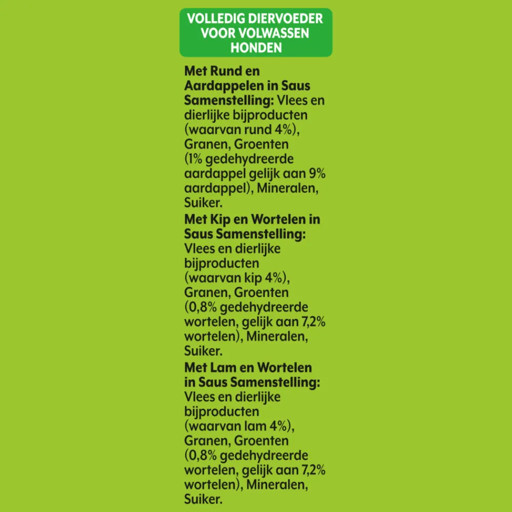 De heerlijke, complete en gebalanceerde natte maaltijden komen in een handige pouch van 100 gr verpakking en bevatten de volgende smaken: