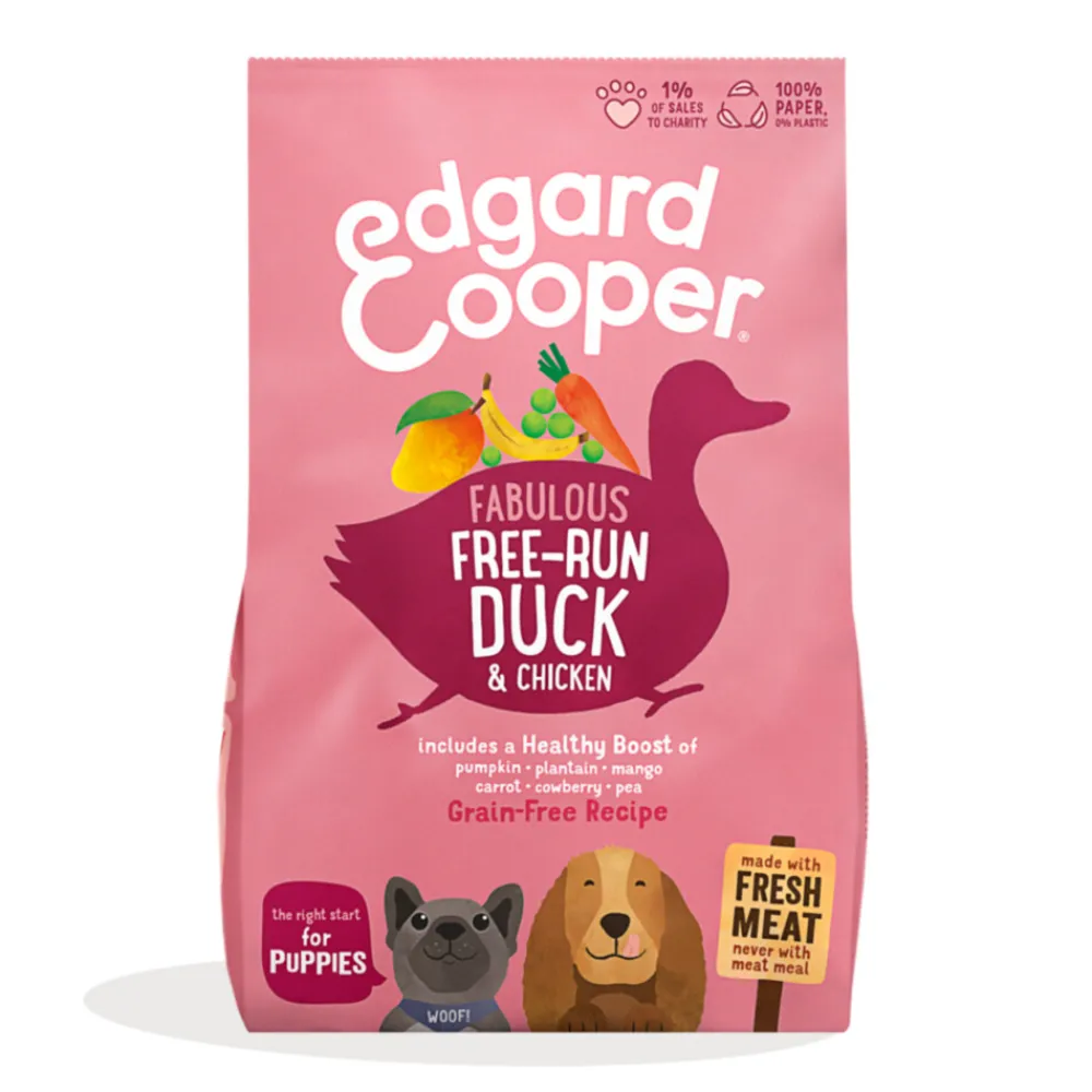 Edgard & Cooper Hondenvoer Puppy Scharrelkip en Scharreleend met bakbanaan, mango, wortel en erwten.