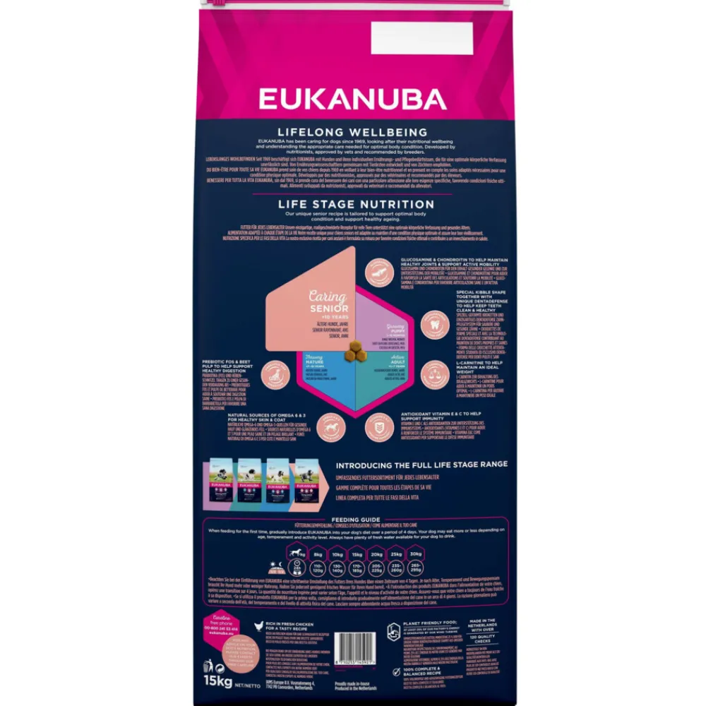Eukanuba Dog Senior Medium Chicken is de ideale voeding voor jouw middelgrote hond vanaf 10 jaar oud. Deze complete droogvoeding is perfect uitgebalanceerd en legt de basis voor een gezonde oude dag. Met hoogwaardige dierlijke eiwitten uit gevogeltevlees en verse kip draagt het bij aan het welzijn en de levenskwaliteit van jouw trouwe viervoeter.