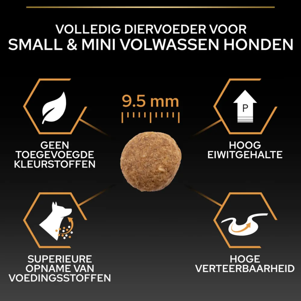 Kleine honden compenseren hun beperkte grootte met hun enorme persoonlijkheid, speelsheid en drang om deel uit te maken van de actie. Kleine honden hebben van nature een hoger metabolismeratio dan grote honden en zijn erg levendig, waardoor ze meer voedingsstoffen nodig hebben in een kleinere hoeveelheid geconcentreerde voeding. Pro Plan Adult Small & Mini Everyday Nutrition is speciaal ontwikkeld om kleine honden de noodzakelijke hoeveelheid voedingsstoffen te bieden voor hun snelle metabolisme, met behoud van een heerlijke smaak. Om de tanden en het tandvlees gezond te houden, bevat dit product ook speciale voedingsstoffen in krokante brokjes om tandsteenvorming te verminderen.