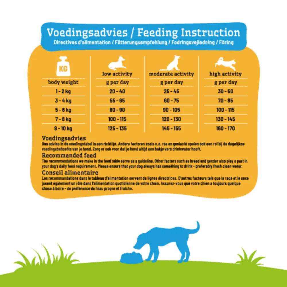 Smølke Adult Mini is een eerlijk product gemaakt met natuurlijke ingrediënten. (Prebiotische) voedingsvezels ondersteunen de werking van het darmstelsel. De biotine en Omega 3- en 6- vetzuren in dit product dragen bij aan een optimale conditie van de huid en vacht en speciale mineralen helpen de vorming van tandplak te beperken. Door Smølke te voeren weet je zeker dat je jouw hond alles geeft wat hij nodig heeft. Zo kun jij je focussen op leuke dingen doen samen met je hond!