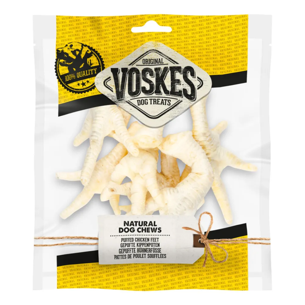 Gepofte Kippenpoten van Voskes zijn een smakelijke, natuurlijke snack. Zijn niet hard qua structuur en gemakkelijk op te kauwen.