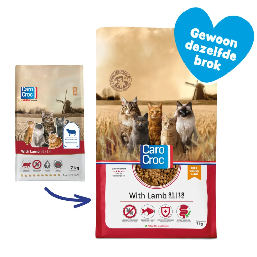 CaroCroc met Lam is een smakelijke voeding voor de kat. Door het hoge aandeel Lam (11%) is het lichter verteerbaar.