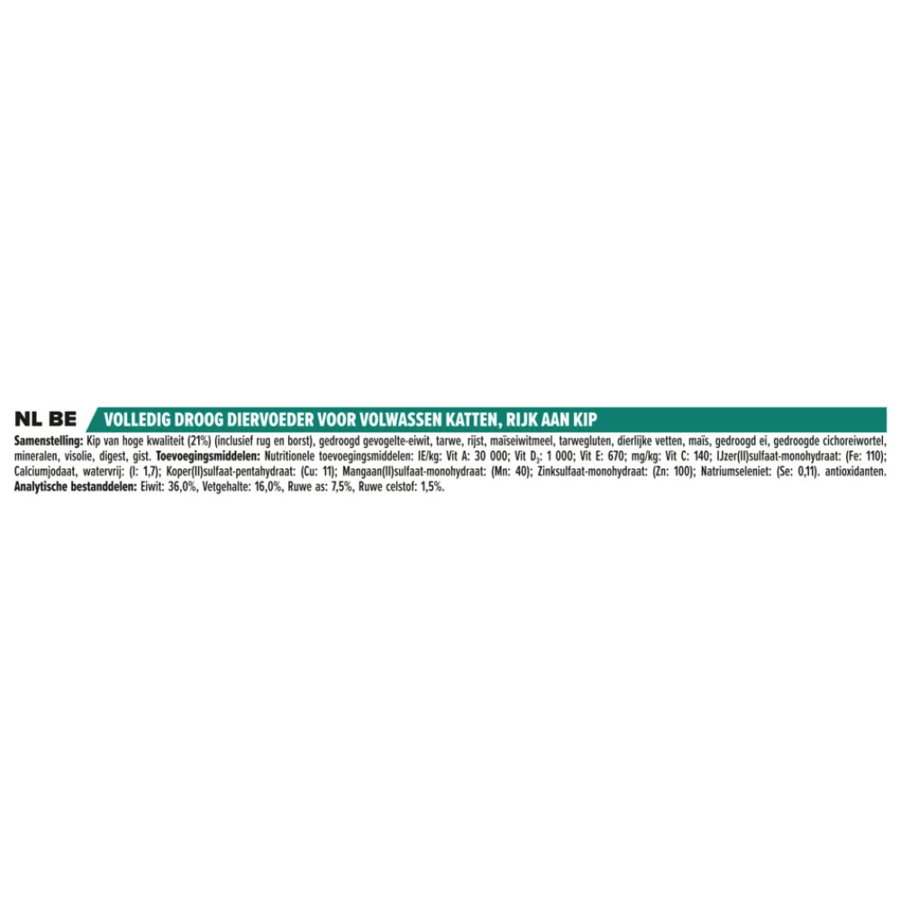 De samenstelling is deskundig uitgebalanceerd om de algemene gezondheid van jouw kat te ondersteunen. Het combineert essentiële voedingsstoffen zoals vitamine A, C en E voor een sterk immuunsysteem en een gezonde huid en vacht. De voeding bevat veel eiwitten om sterke spieren en een gezond gewicht te ondersteunen, terwijl de knapperige brokjes tanden beschermen tegen de opbouw van tandplak en tandsteen.