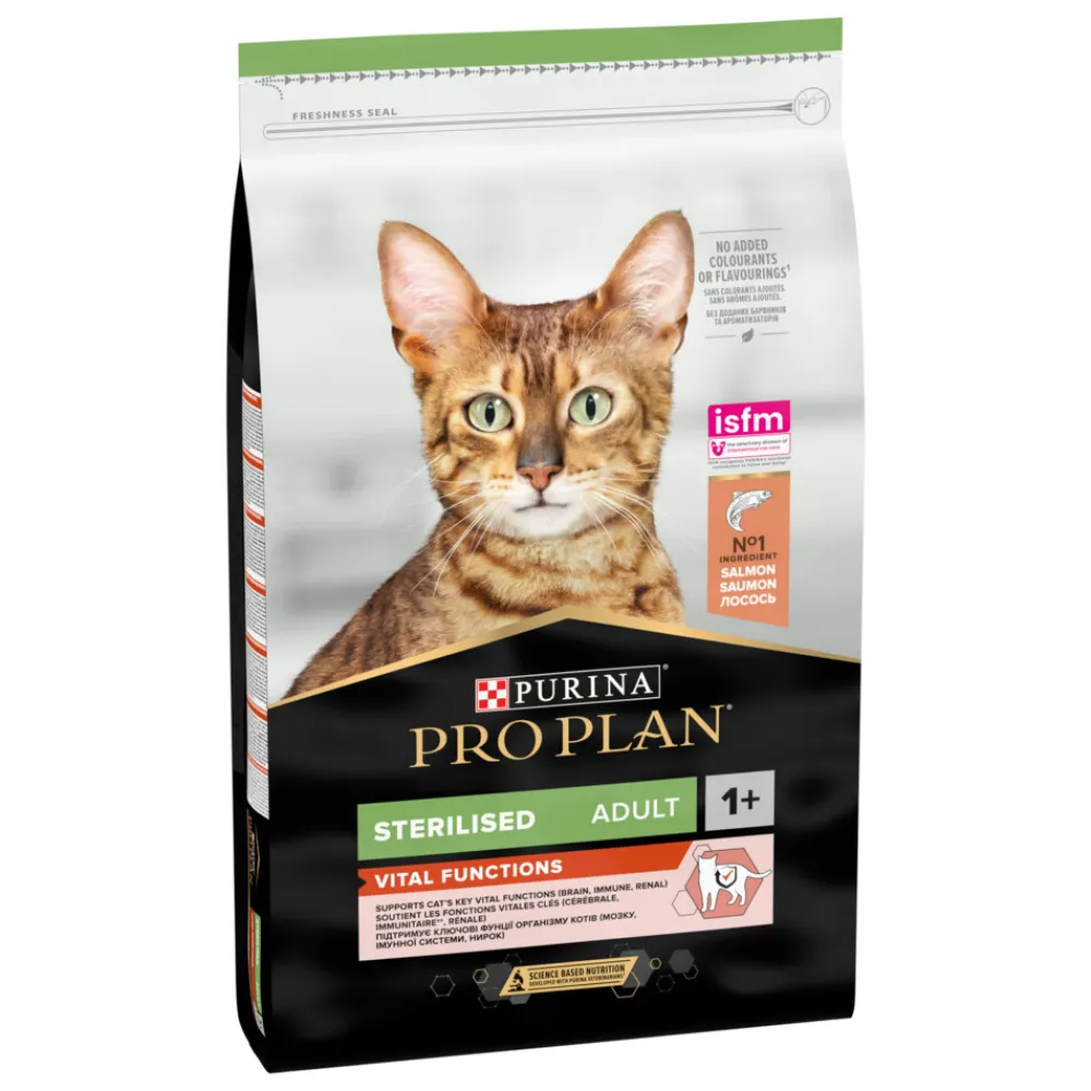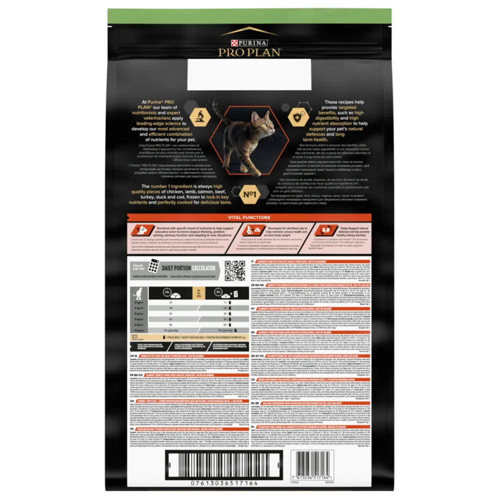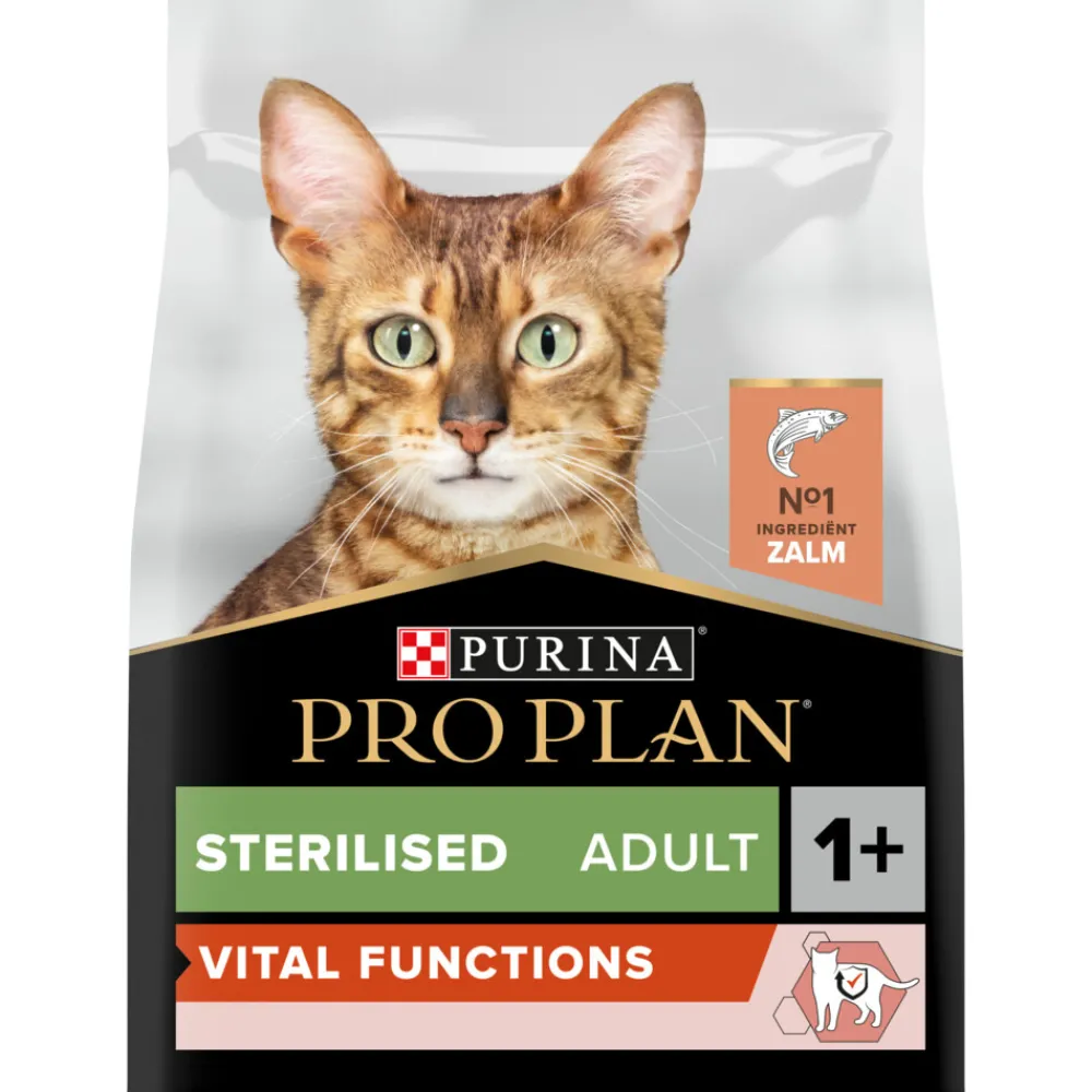 Pro Plan Adult Kat Sterilised Vital Functions Zalm (voorheen OptiSenses Sterilised) is een volledige en droge diervoeder wetenschappelijk samengesteld voor gesteriliseerde of gecastreerde volwassen katten. Pro Plan Sterilised Vital Functions bevat alle voedingsstoffen die jouw kat nodig heeft voor de dagelijkse vitaliteit en gezondheid op de lange termijn. Het bevat ook Vital Functions, een voedingsmix die wetenschappelijk bewezen het brein voedt om de vitale zintuigen te ondersteunen.