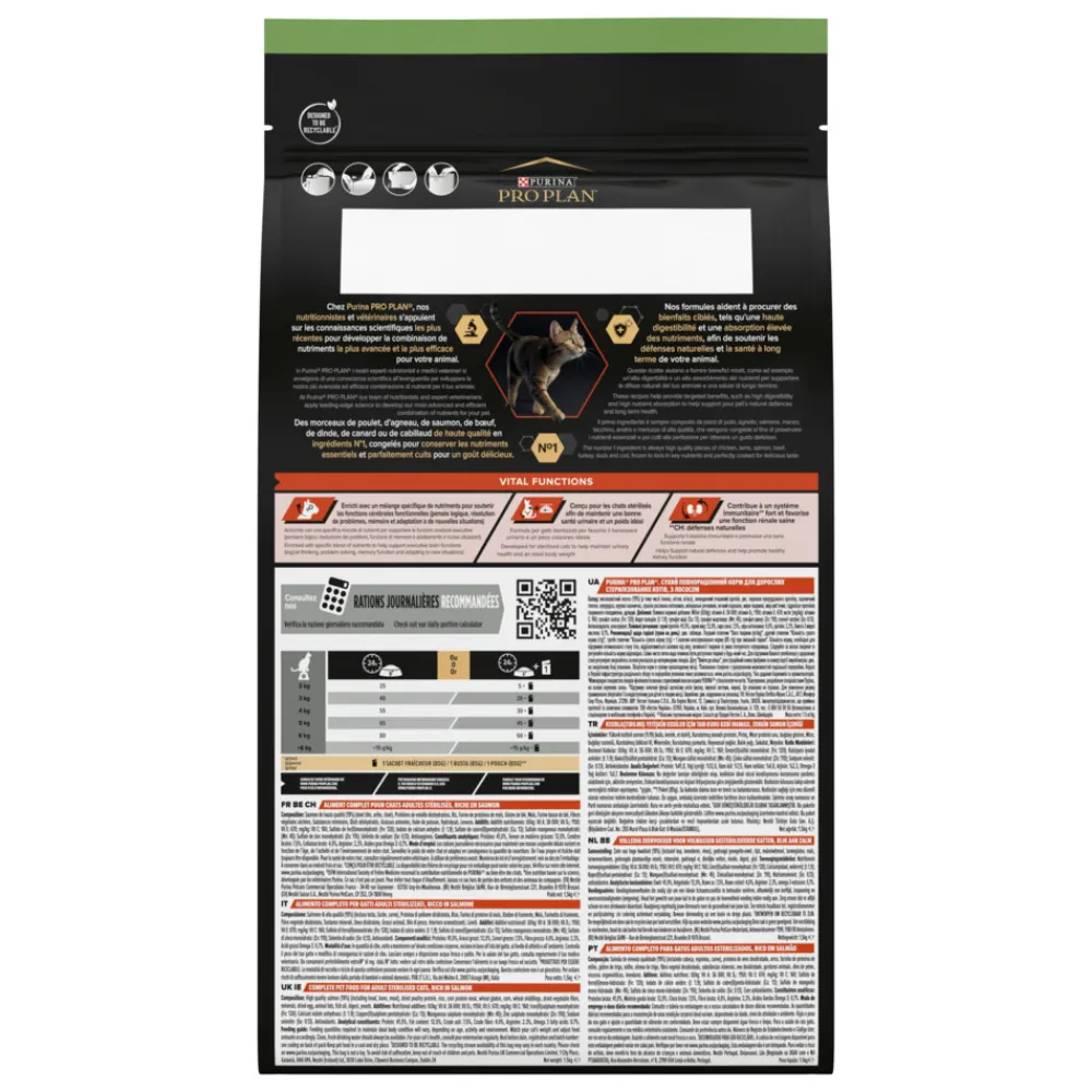 Pro Plan Adult Sterilised Vital Functions Zalm (voorheen OptiSenses) is een volledige en droge diervoeder wetenschappelijk samengesteld voor gesteriliseerde of gecastreerde volwassen katten. Pro Plan Optisenses Sterilised bevat alle voedingsstoffen die jouw kat nodig heeft voor de dagelijkse vitaliteit en gezondheid op de lange termijn. Het bevat ook Vital Functions, een voedingsmix die wetenschappelijk bewezen het brein voedt om de vitale zintuigen te ondersteunen.