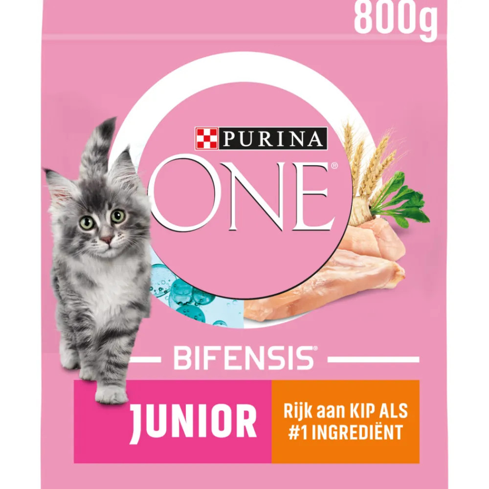 Purina ONE met Bifensis bevat een unieke nutritionele formule met heilzame functionele bacteriën, waarvan wetenschappelijk bewezen is dat ze de natuurlijke afweer van jouw kat versterken van binnenuit. Daarnaast bevat Purina ONE Junior DHA, een functionele voedingsstof die ook voorkomt in moedermelk, waarvan is bewezen dat deze de ontwikkeling van hersenen en zicht bij kittens stimuleert. Hoge eiwit-, mineraal- en vitaminewaarden in de Purina ONE Junior voeding helpen de ontwikkeling van een gezond skelet en spiermassa te ondersteunen.