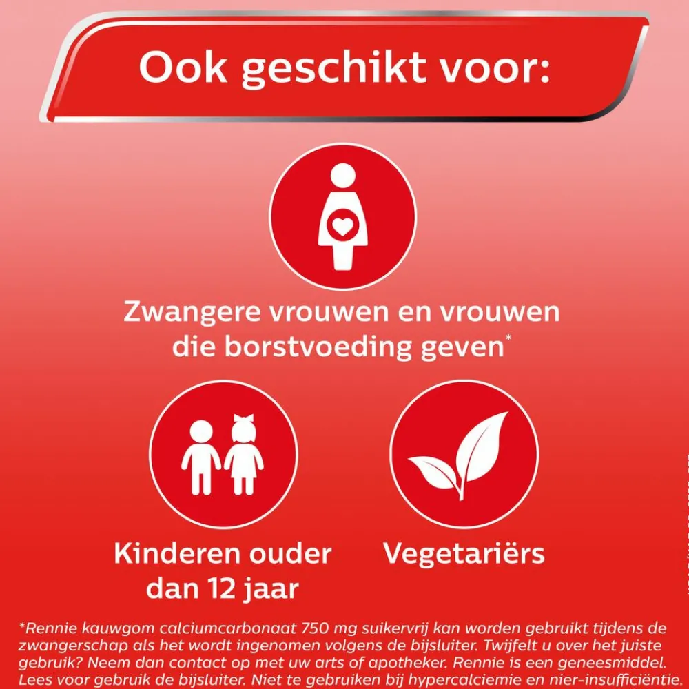 | Productnaam | Rennie kauwgom calciumcarbonaat 750 mg suikervrij |