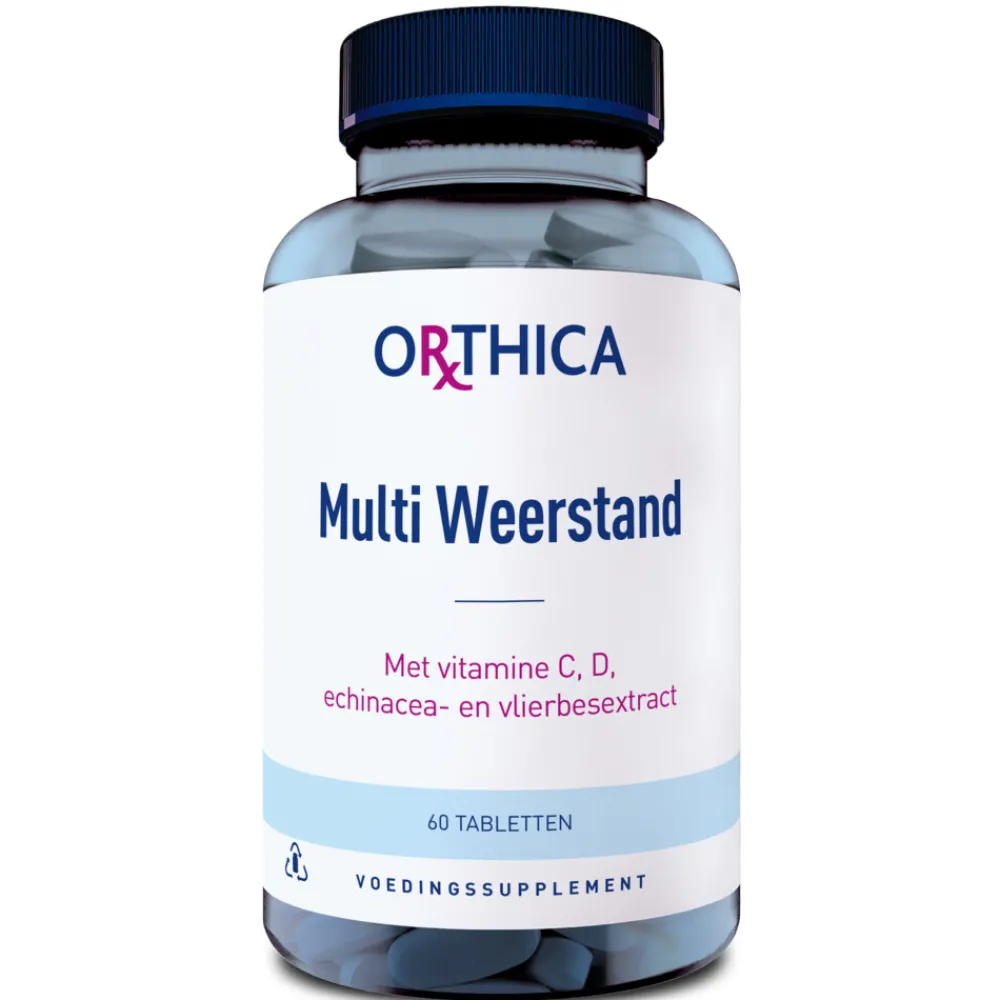 Orthica Multi Weerstandis een multivitamine dat kan dienen als nuttige aanvulling op een gezonde voeding en levensstijl. De tabletten bevatten vitamine C en vitamine D ter ondersteuning van de weerstand, en daarnaast ook vlierbes- en echinacea-extract. Het supplement helpt bij het vrijmaken van je natuurlijke energie2, en kan bijdragen aan vermindering van moeheid en vermoeidheid3.