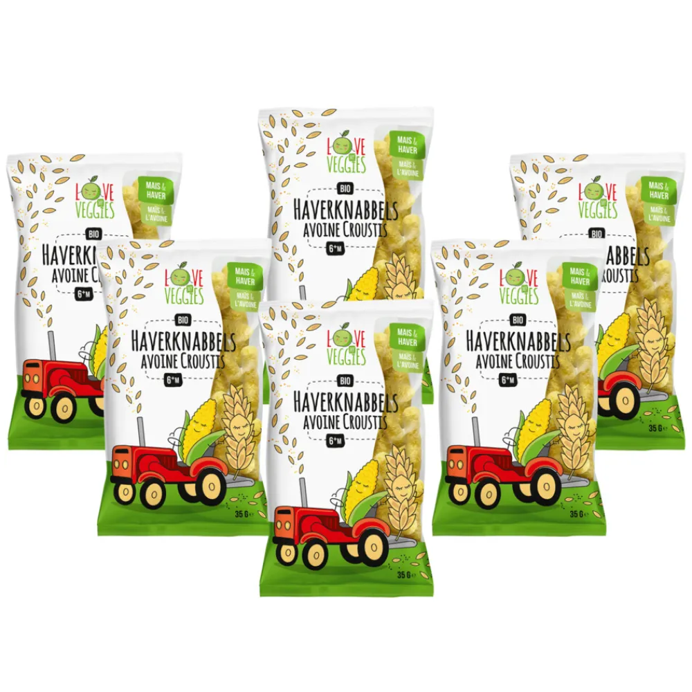 Haverknabbels zijn 100% biologisch en zonder kleur- en smaakstoffen. Met deze snack heeft geen enkel kleintje moeite, ze smelten in de mond. De haverknabbels zijn perfect voor kleine babyhandjes.