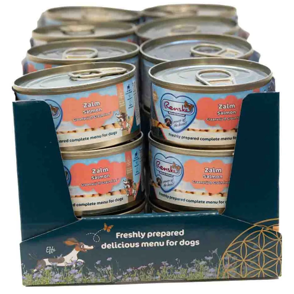 Renske Vers Gestoomd Complete Menu Zalm Graanvrij is een graanvrije maaltijd voor jonge en volwassen honden van alle rassen vanaf 9 weken. De voeding bevat minimaal 55% zalm en is geheel graanvrij. Het voer is aangevuld met aardappel en heerlijke groenten. De zuivere, verse en natuurlijke ingrediënten zijn licht gestoomd en vacuüm geseald voor het behoud van de noodzakelijke voedingstoffen. Omdat dit product gestoomd is, is het product 100% veilig en ideaal voor onderweg of op vakantie.