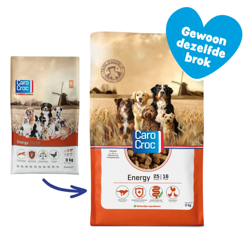 CaroCroc Energy 25/16 hondenbrokken houden jouw hond in topconditie en geven jouw hond de juiste hoeveelheid energie die hij nodig heeft. De energie in de CaroCroc Energy brokken vormt zich door een uniek eiwit- en vetgehalte.