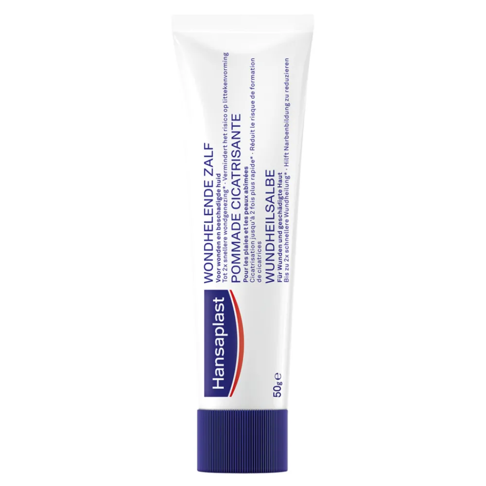 Een zalf ter ondersteuning en bevordering van het natuurlijke genezingsproces van kleine oppervlakkige wonden zoals sneeën, schaafwonden en krassen als ook voor eerste en kleine tweedegraads brandwonden. Hansaplast Wondhelende Zalf kan gebruikt worden op elk moment van het genezingsproces op oppervlakkige open wonden en beschadigde huid.