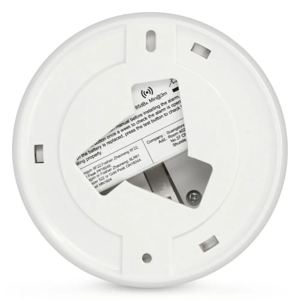 Bij de rookmelder krijg je een Alkaline 9V batterij geleverd, met lange levensduur. Ook de bodemplaat om de rookmelder aan de wand of het plafond te bevestigen zit in het pakket, evenals de benodigde schroeven en pluggen.