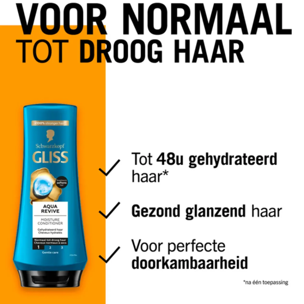 De Gliss Kur Aqua Revive Conditioner is speciaal ontworpen om droog en beschadigd haar te hydrateren en te herstellen. Het is verrijkt met een aquaporine-complex, dat de vochtbalans van het haar optimaliseert en zorgt voor gezond, zacht en glanzend haar.