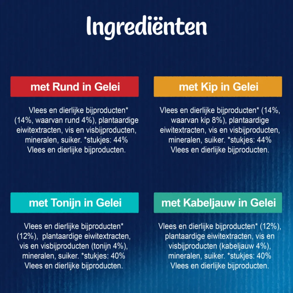 *stukjes: 40% Vlees en dierlijke bijproducten.