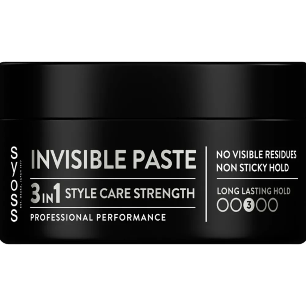 Breng het gevoel dat je net van de kapper komt thuis tot leven met Syoss! De salon- geïnspireerde SYOSS Invisible paste, ontwikkeld met en getest door kappers, biedt professionele kwaliteit waarmee je zelf gemakkelijk die salon looks thuis kunt creëren.Dit product is een fijne pasta die je haar een mooie natuurlijke finish geeft en gemakkelijk is aan te brengen. Het voordeel van het gebruik van een paste is dat het je haar zacht en soepel houdt en je daardoor gemakkelijk gedurende de dag je haar kunt re-stylen. Ook is het geschikt voor wat langer haar.