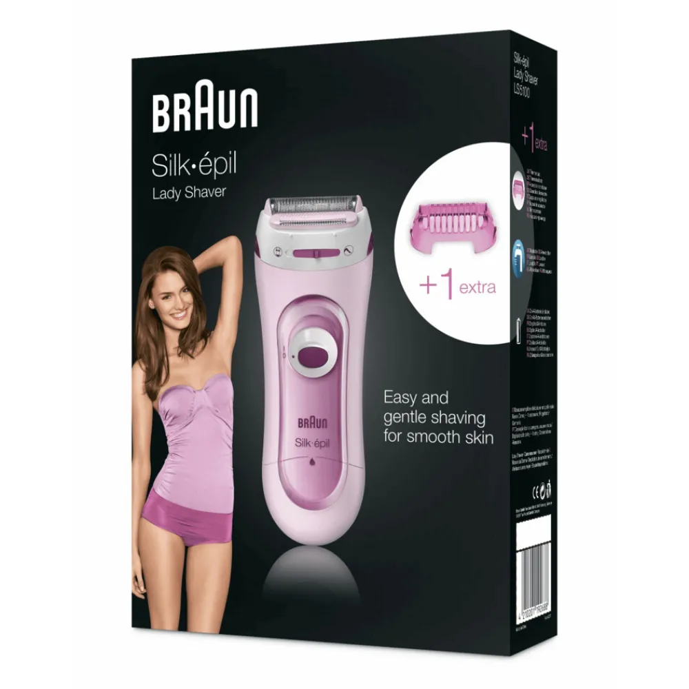 De Braun Silk-épil elektrische Lady Shaver 5-100 is een draadloos scheerapparaat en trimmersysteem voor gebruik op de benen, oksels en bikinilijn. De ronde kop past zich aan de lichaamscontouren aan voor gemakkelijk gebruik. Een trimmeropzetstuk verwijdert zachtjes het haar op gevoelige plekken zoals de bikinilijn. Bevat 1 extra: trimmeropzetstuk.