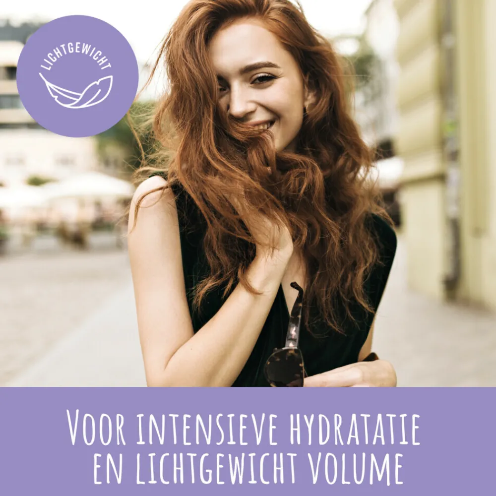 - Voor intensieve hydratatie en lichtgewicht volume in droog een futloos haar