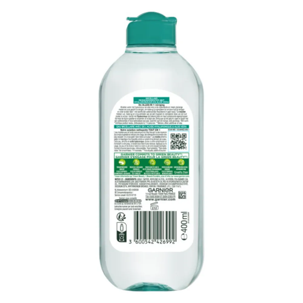 Garnier Micellair Reinigingswater met hyaluronzuur en aloë vera is de makkelijkste en meest plezierige manier om jouw gezicht te reinigen, om make-up te verwijderen en om jouw huid voller te laten lijken.