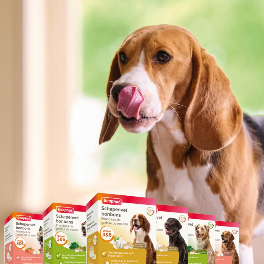 Een 100% natuurlijk aanvullend diervoeder voor honden. De smaakvolle bonbons zijn rijk aan A en D vitaminen, mineralen en sporenelementen. Dit draagt bij aan een soepele en glanzende vacht. Verder hebben Beaphar Schapenvet Bonbons een gunstig effect op het verteringsstelsel en wordt de natuurlijke weerstand ondersteund.