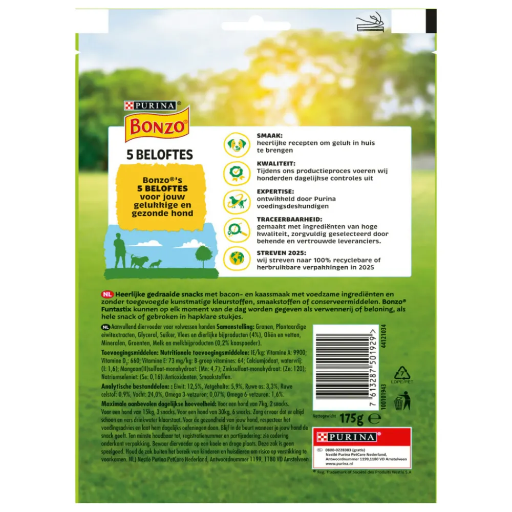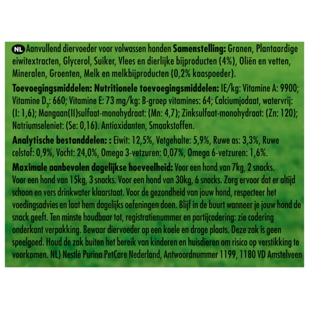 Heerlijke gedraaide snacks met bacon- en kaassmaak. Ze bevatten voedzame ingrediënten en een heerlijke vulling met kaassmaak waardoor ze gezond én lekker zijn! Ze kunnen op elk moment van de dag worden gegeven als verwennerij of beloning. De snacks kunnen in z’n geheel worden gegeven of in gebroken hapklare stukjes.