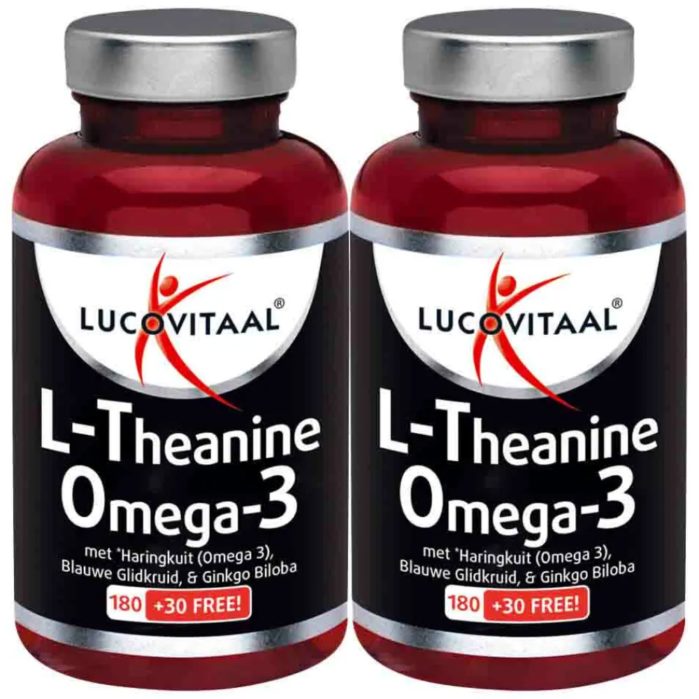 Lucovitaal L-Theanine Omega 3 bevat L-Theanine, Haringkuit, Ginkgo Biloba en Blauwe Glidkruid (Scutellaria galericulata).