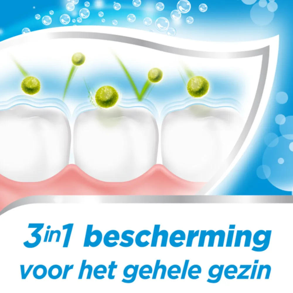 Aquafresh Freshmint is een 3-in-1 tandpasta voor het hele gezin met een frisse smaak en Suikerzuur Bescherming*, die beschermt tegen gaatjes, tandvleesproblemen, tandplak en tandsteen opbouw*. Bacteriën in tandplak kunnen suiker omzetten in zuren die gaatjes veroorzaken.