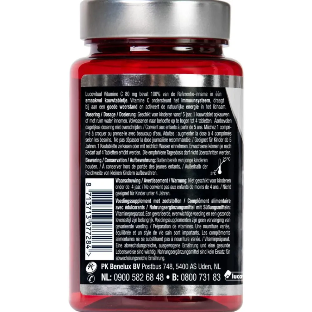 - Bevat 80 mg vitamine C per tablet