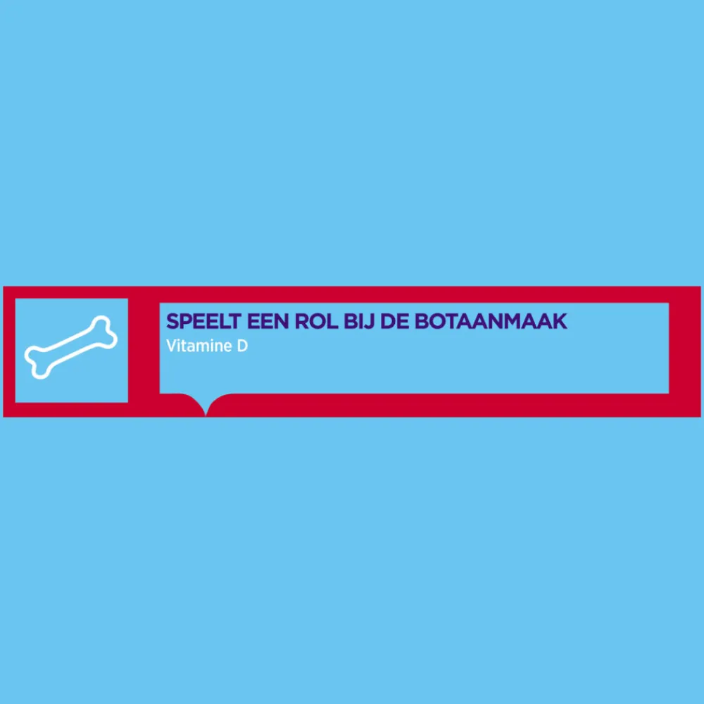 Suiker, water, emulgator (polysorbaat 80), natuurlijk aroma, cholecalciferol, conserveermiddelen (kaliumsorbaat, natriumbenzoaat), zuurteregelaar (citroenzuur, natriumhydroxide).
