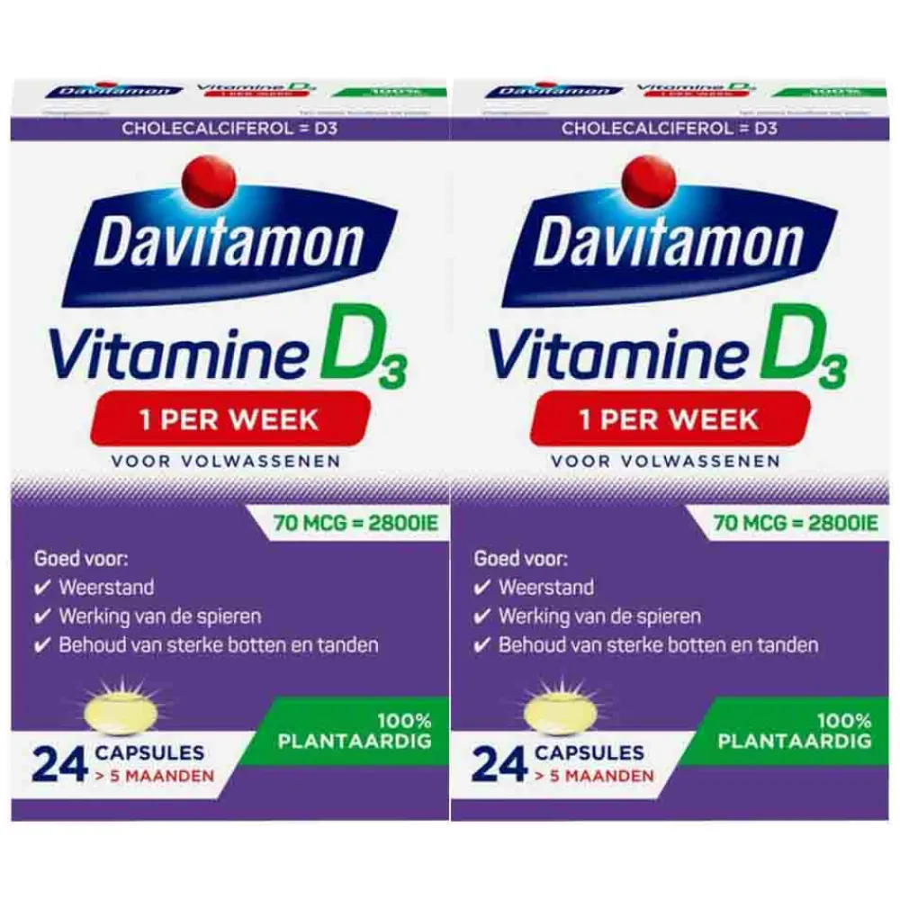 Davitamon Vitamine D Vegan 1 Per Week bevat D3 (cholecalciferol) afkomstig uit planten. Daarom is het geschikt voor veganisten en vegetariërs. Deze kleine vitamine D3 plantenextract oliecapsules zijn speciaal ontwikkeld voor iedereen die, als aanvulling op de voeding, slechts 1 keer per week aan inname wil denken. Eén capsule bevat een dagelijkse portie vitammine D van 10 µg per dag.