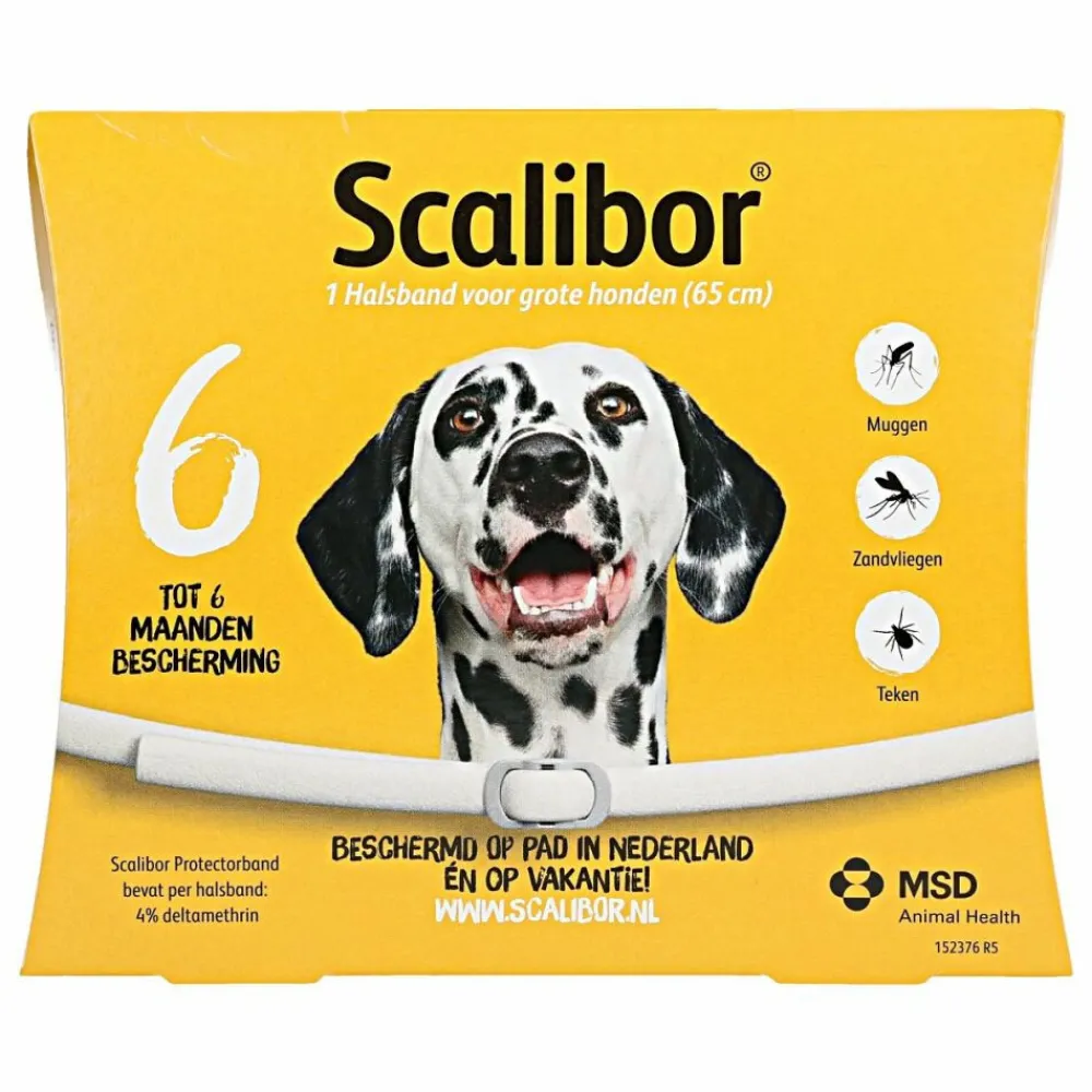 De Scalibor protectorband beschermd tegen teken, zandvliegen en hartwormmuggen. De scaliborband is de ideale bescherming voor de hond die meegaat op vakantie naar het buitenland.
