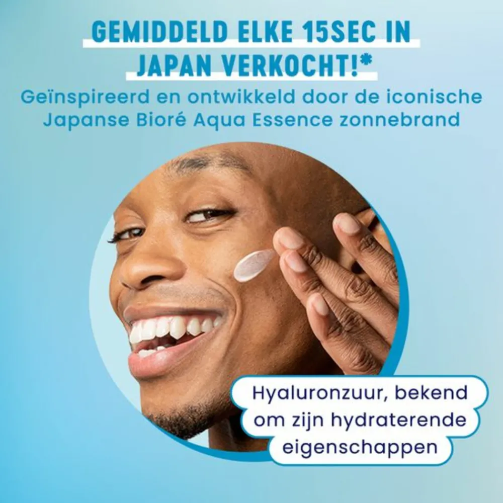 Geïnspireerd door de iconische Japanse Bioré Aqua Essence zonnebrand is de UV Aqua Rich Weightless Moisturiser SPF 30 ontwikkeld.