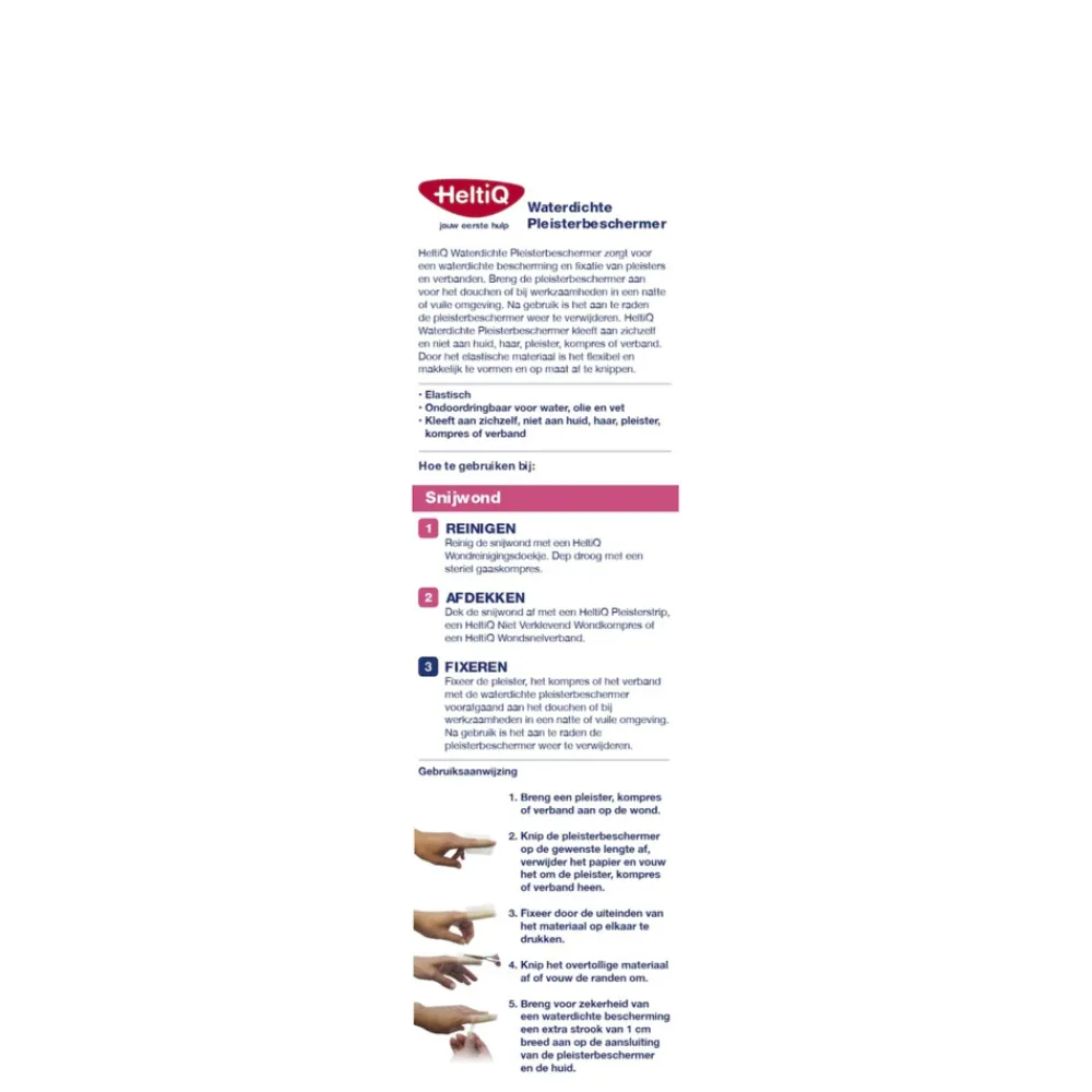 HeltiQ Waterdichte Pleisterbeschermer gebruik je om je pleister, kompres of verband volledig te beschermen door het waterdicht te maken. Door je pleister, kompres of verband te voorzien van de waterdichte pleisterbeschermer bescherm je jouw wond tegen water of vocht wanneer je gaat douchen, zwemmen of bij werkzaamheden in een natte of vochtige omgeving.