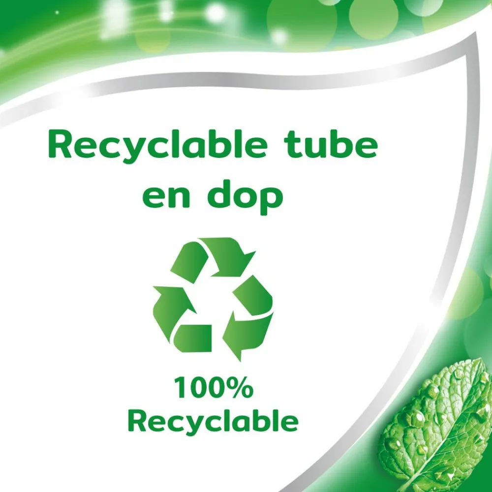 Aquafresh Anti-Cariës wordt geleverd in een recyclebare plastic tube en dop, vergeet niet deze na gebruik te recyclen.