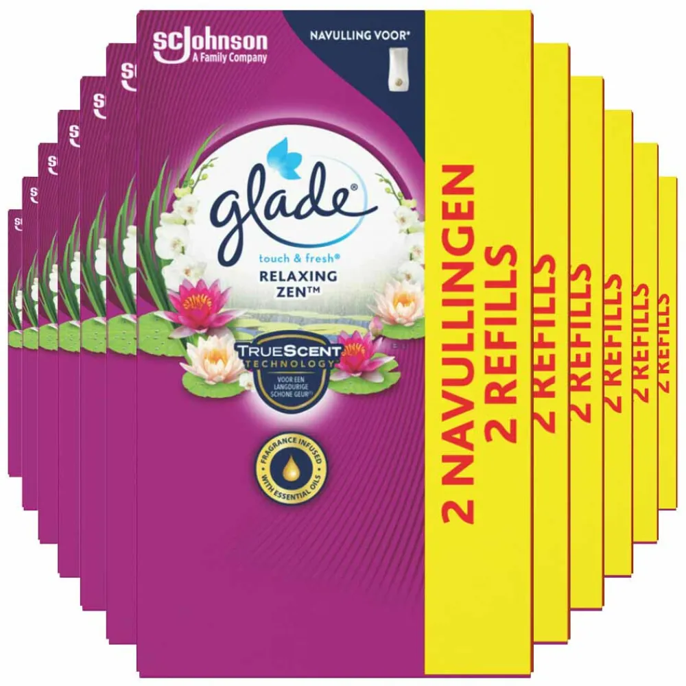 Glade Touch & Fresh Relaxing Zen duo navulling verspreidt een ontspannende geur van verse appel, bloemen en rustgevende sandelhout door je huis.