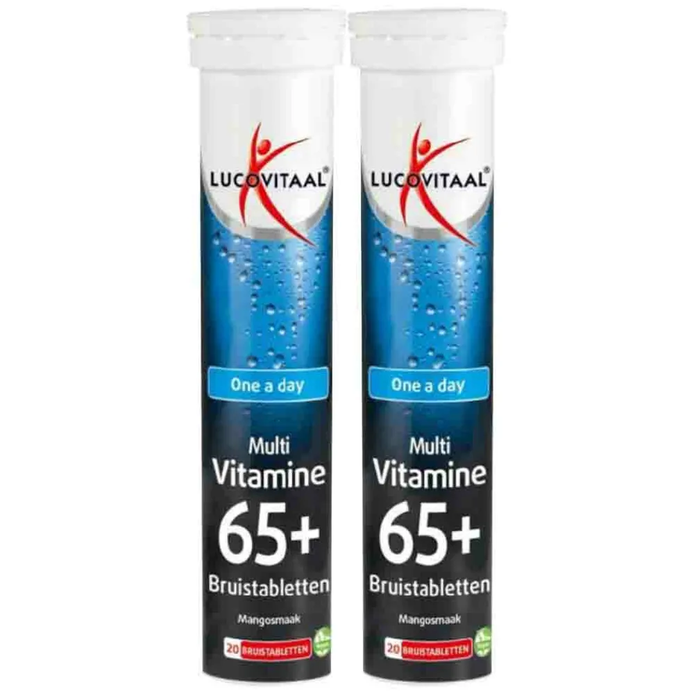 Lucovitaal Multi Vitamine 65+ Bruistabletten met Mangosmaak maakt het innemen van de dagelijkse vitaminen toegankelijker. Geniet van een drankje met frisse mangosmaak, een uitkomst wanneer het oraal innemen niet makkelijk gaat. De multivitamine is speciaal samengesteld voor 65 plussers en heeft een gunstige invloed op de algehele gezondheid. Vitamine C ondersteunt de afweer van het lichaam en zorgt mede voor een goede weerstand. Vitamine B12 heeft een positieve invloed op het immuunsysteem en ondersteunt de energiestofwisseling.